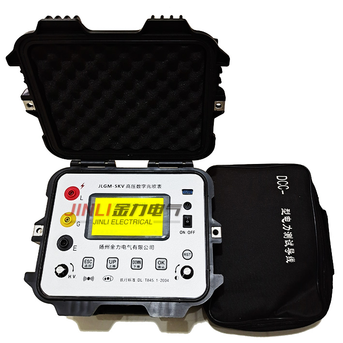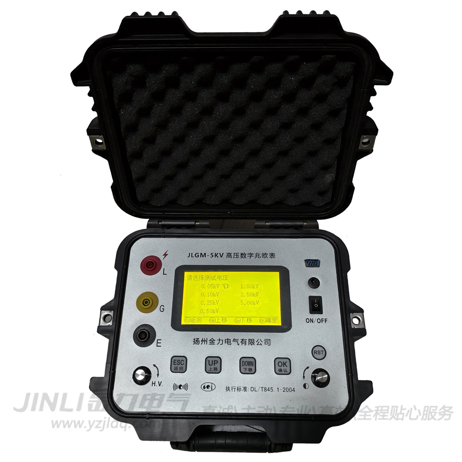 JLGM-5KV高压数字兆欧表测试电压高,功率大,被测量对象往往又带有工频泄漏或感应上高压干扰电能,使用该仪器首先一定要接好接地线。