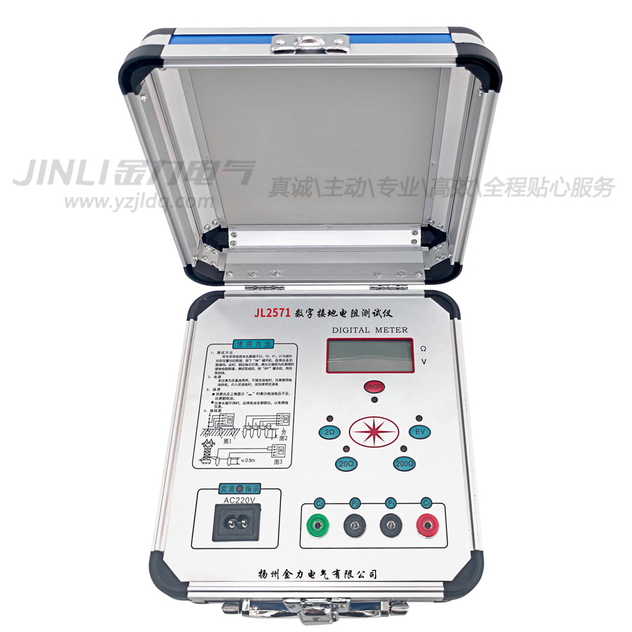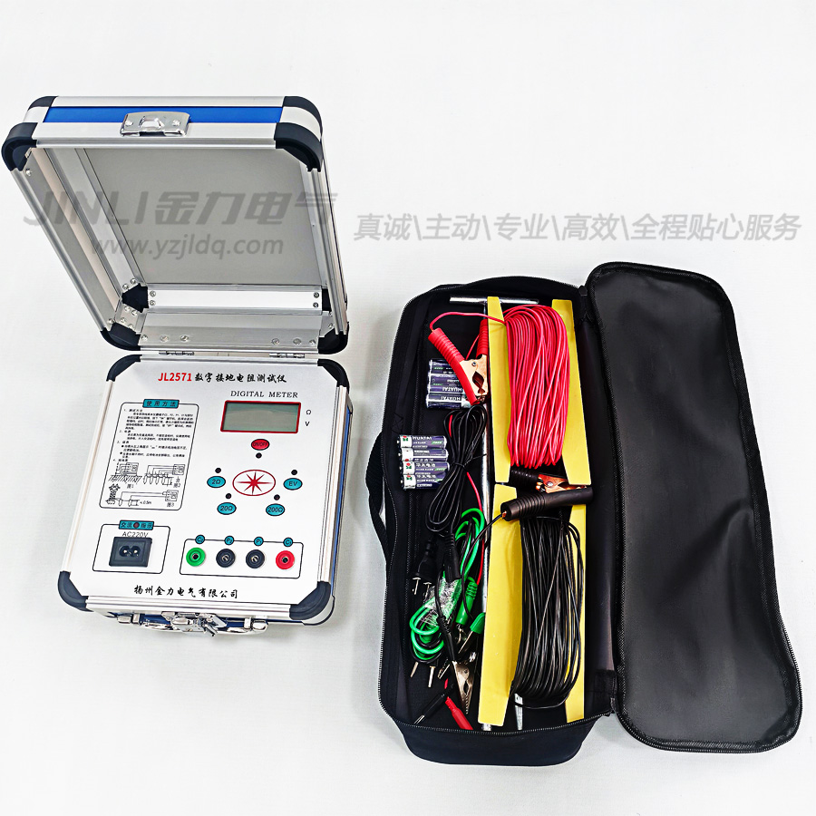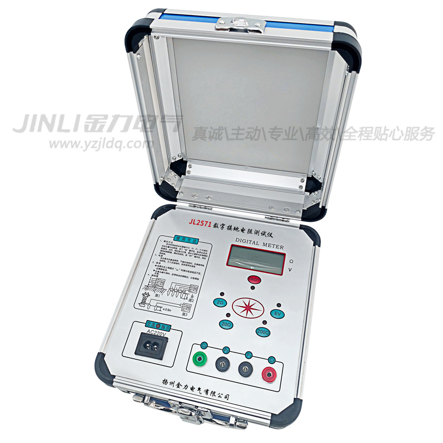 JL2571数字接地电阻测试仪、本表适用于电力、邮电、铁路、石油、化工、通信、矿山等部门测量各种装置的接地电阻以及测量低电阻的导体阻值,本表还可测量土壤电阻率及地电压。