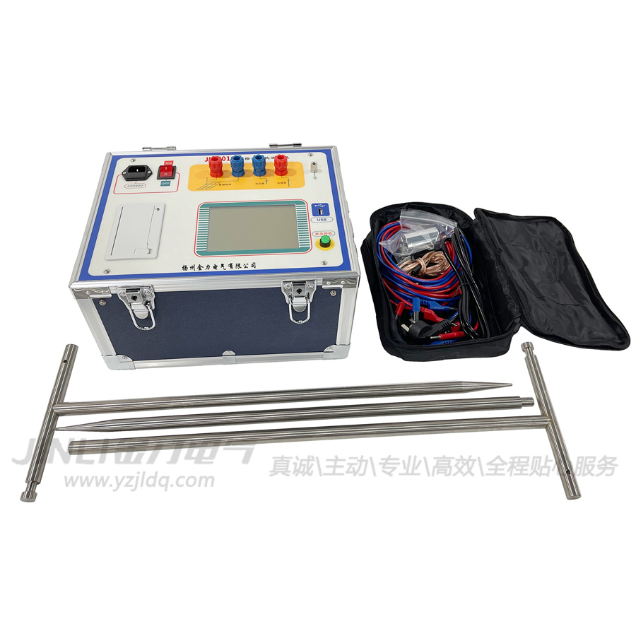JL7001型异频地网接地阻抗测试仪是变电站等各种现场应用于对接地电阻及相关参数测试的高精度测试仪器。该仪器具有体积小、重量轻、携带方便、抗干扰性能强、准确度高等特点。仪器为一体化结构,内置变频电源模块,输出电源连续变频可调。频率可变为45Hz或55Hz,内置高速处理器核心,采用高端数字滤波技术,有效避开了工频电场对测试的干扰,从根本上解决了强电场干扰下准确测量的难题。大量现场测试和用户使用情况表明,在运行变电站的恶劣电磁环境下进行接地网测试时,大地网接地电阻测试仪的测量数据准确稳定、重复性好,是大、中型接地网特性参数测量的理想仪器。