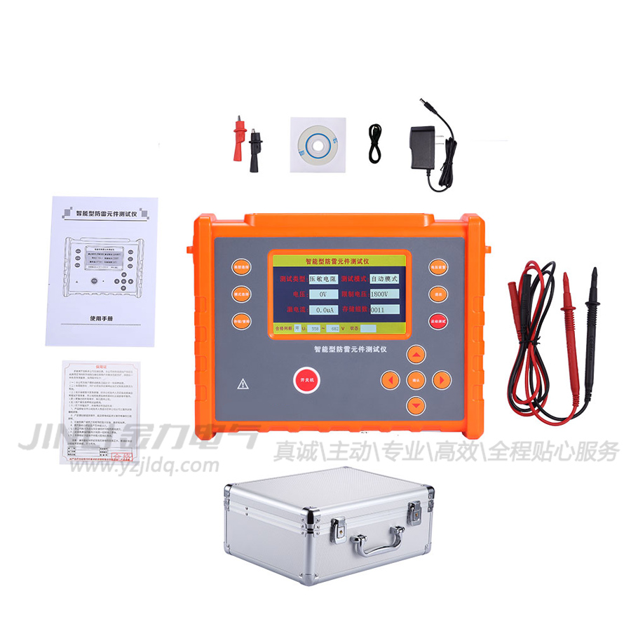JL8007智能型防雷元件测试仪又名防雷元件测试仪、SPD现场测试仪,用于避雷器、防雷器、浪涌保护器、压敏电阻、金属陶瓷放电管、直空避雷管等性能测试的仪表。本仪表采用充电功能离线使用克服了传统产品要插电使用不方便现场操作的缺点、电压输出2000V应用范围更加广泛、使用高压短路保护、自动放电功能、仪表可靠耐用。同时具备绝缘电阻测试功能、采用豪华大彩屏幕显示、数据存储、数据查阅、合格判断、自动关机、USB数据上传等功能。整机美观,量程宽广,分辨率高,操作便捷,携带方便,准确、可靠、性能稳定,抗干扰能力强。