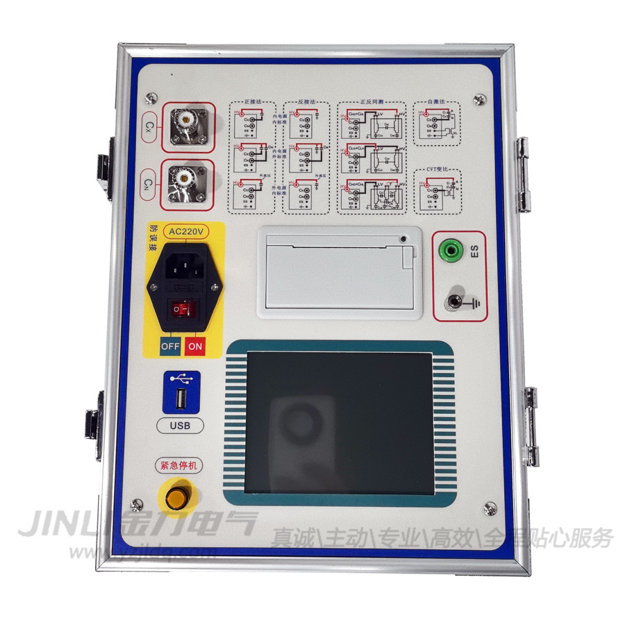 仪器能够分别使用内高压、外高压、内标准、外标准、正接法、反接法、自激法等多种方式测试;在外标准外高压正接法情况下可以做高电压(大于10kV)介质损耗。
