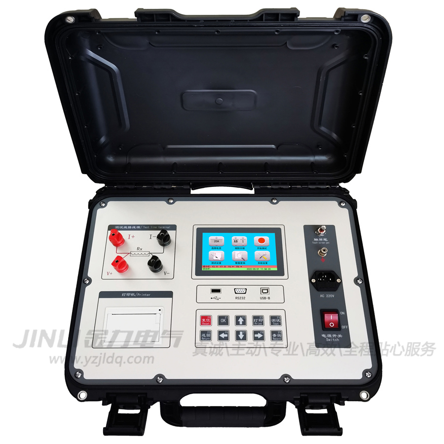 JL3008直流电阻测试仪20A(触屏/按键两用款)器采用全新电源技术,具有体积小、重量轻、输出电流大、重复性好、抗干扰能力强、保护功能完善等特点。整机由高速单片机控制,自动化程度高,具有自动放电和放电报警功能。本仪器测试精度高,操作简便,可实现变压器直流电阻的快速测量。