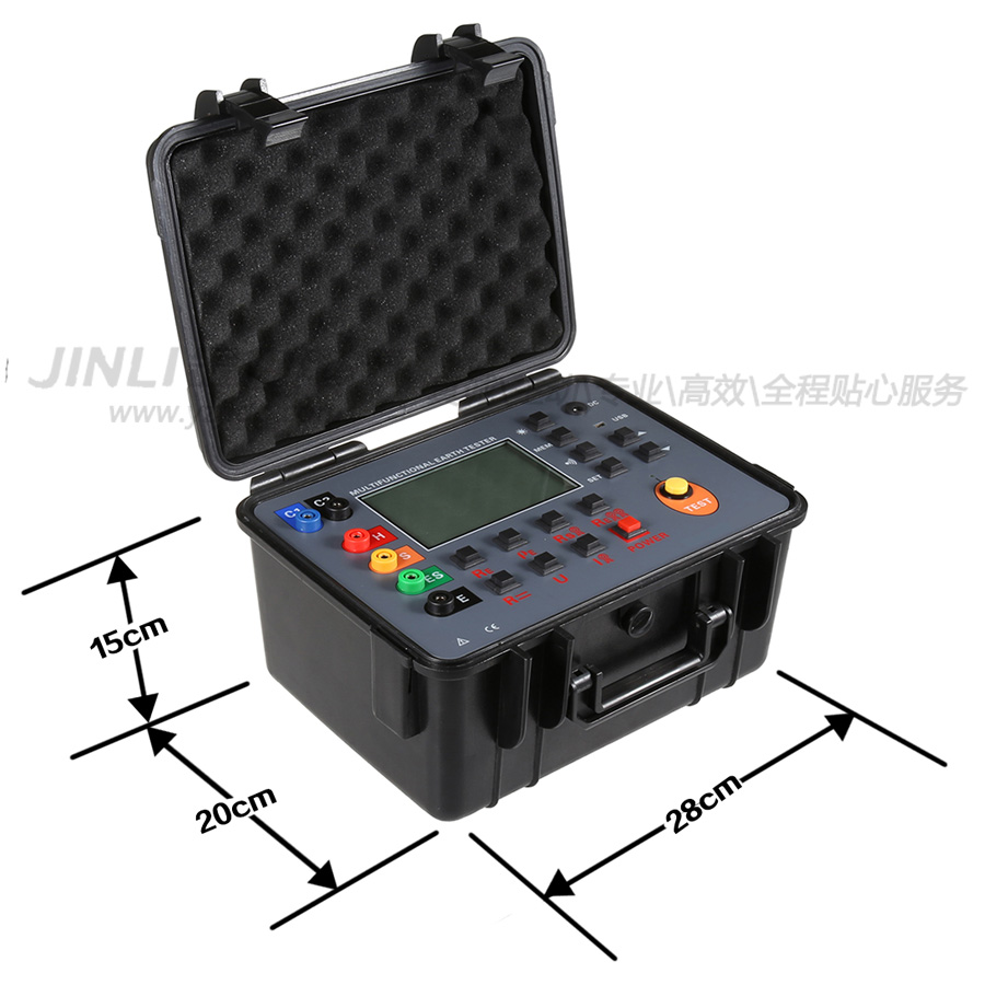 JL7008双钳多功能接地电阻测试仪由主机、监控软件、测试线、USB线、接地针组成,具有历史数据读取、查阅、保存、报表、打印等功能。