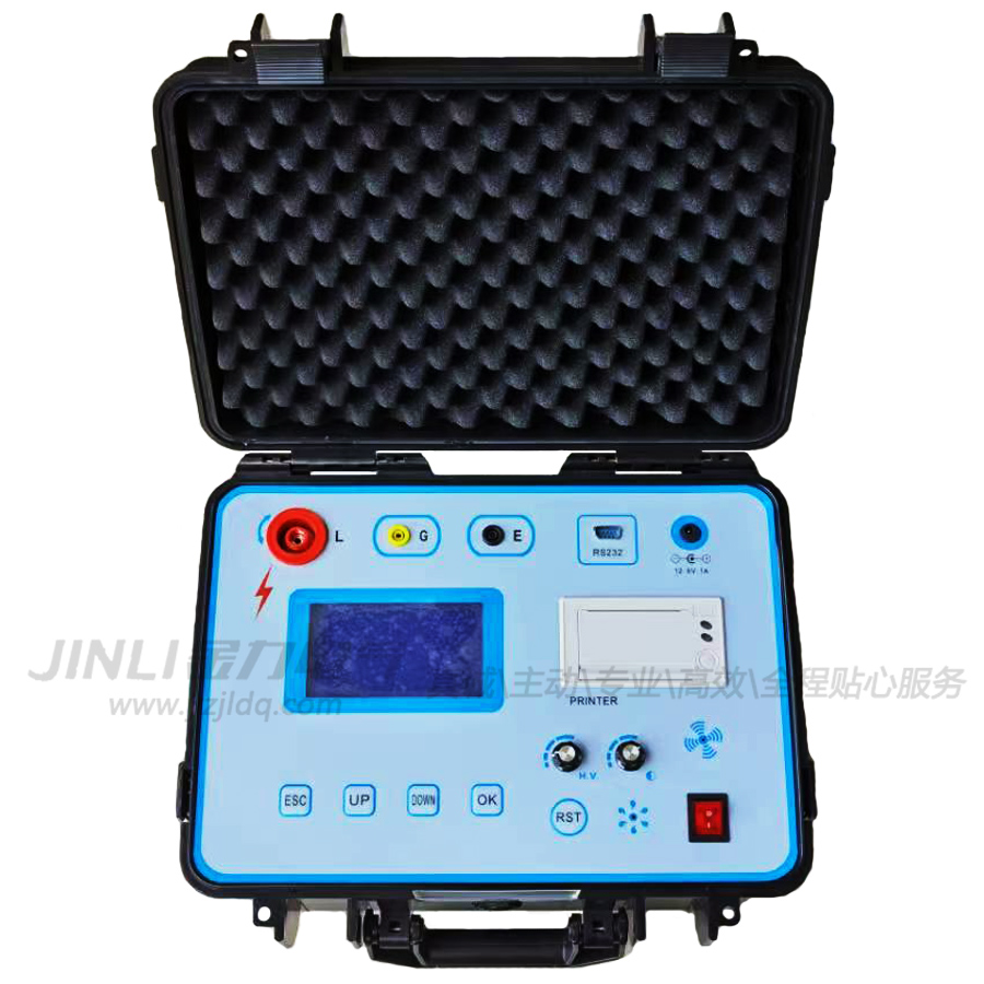 JL9001水内冷发电机绝缘电阻测试仪采用高精度微电流测量系统、数字升压系统。本仪器用于测量水内冷发电机定子绕组的绝缘性能,常被用于电机出厂试验或定期例行维护试验中用来判断电机在数月或数年内绝缘电阻的变化。绝缘电阻发生大的变化,就可能预示着潜在的故障。
