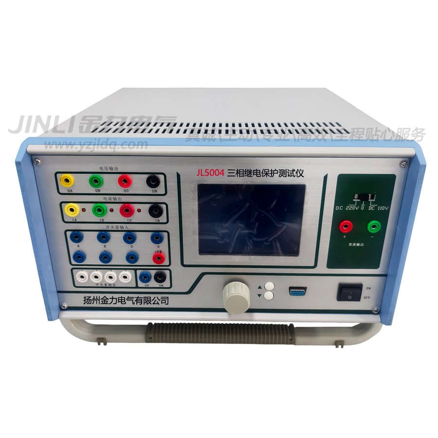 ◆ 标准的4相电压3相电流输出:JL5004三相继电保护测试仪具有4相电压3相电流输出,可方便地进行各种组合输出进行各种类型保护试验。每相电压可输出120V,电流三相可输出120A,第4相电压Ux为多功能电压项,可设为4种3U0或检同期电压,或任意某一电压值的情况输出。