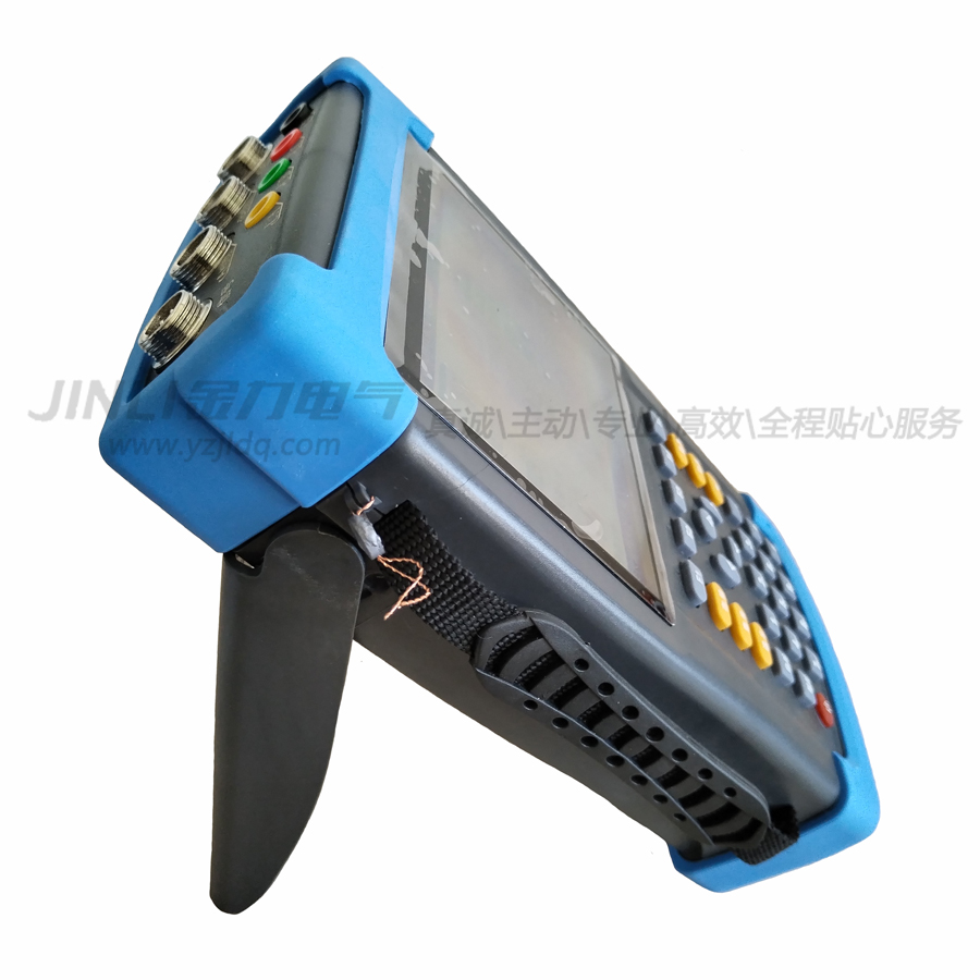 本机操作时中可以打开后部的支架放在桌面使用,亦可手持操作使用。为方便手持操作,本机可增加固定手持操作的紧固带。手持操作时可以将手固定在仪器的左侧,保证了手持操作的方便灵活。