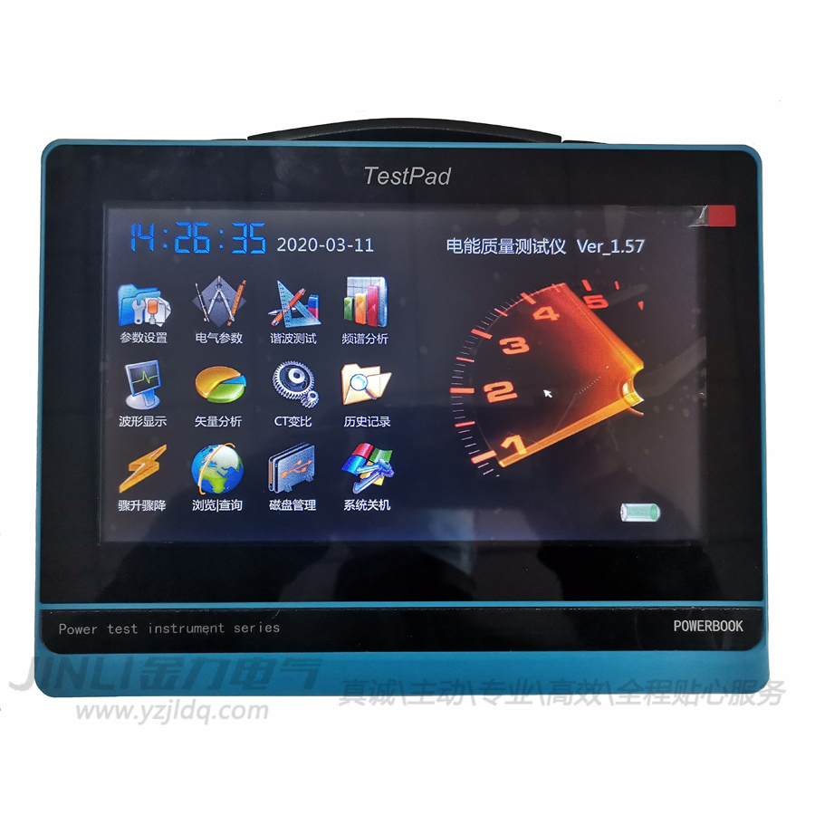 我公司设计研发的JL1214平板式电能质量分析仪是一种集电能质量分析、电参量测试、电力矢量分析为一体的多功能测试仪器。该仪器支持50Hz/60Hz电网工频系统测量,它可记录分析现场的谐波、电压、电流、频率、波动、闪变、电压骤升骤降、功率和三相不平衡等所有电能质量参数,具备电能质量测量功能,同时提供了专业的上位机分析软件进行二次分析,为用户提供准确的电力故障诊断分析。